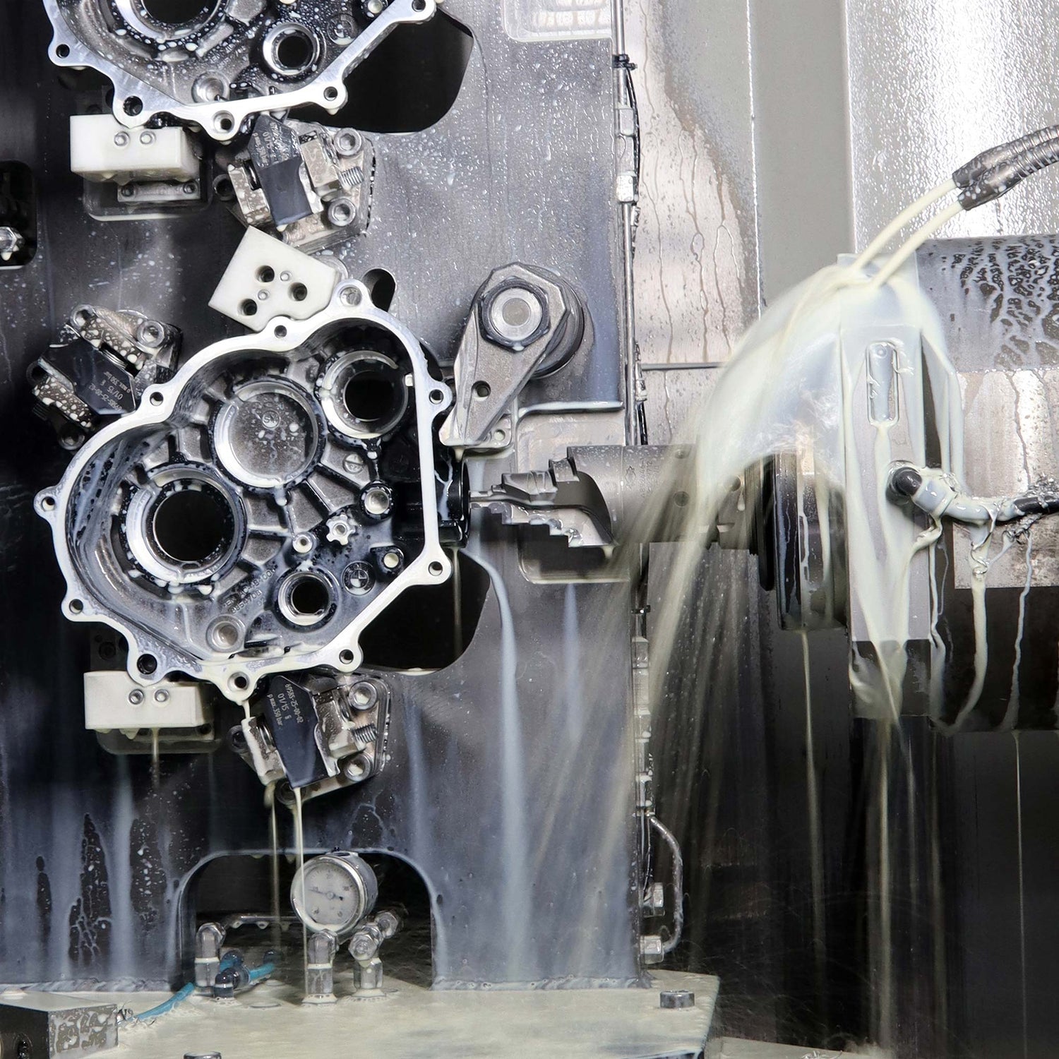 Für die CNC-Bearbeitung von Guß-, Schmiede- und Drehteilen stehen in der Metallbearbeitung derzeit über 130 CNC-Bearbeitungszentren und 15 Drehmaschinen zur Verfügung. Koordinatenmessmaschinen und interne Prüfmöglichkeiten für Werkstoffe und Restschmutzanalysen ermöglichen uns eine äußerst umfangreiche Qualitätssicherung.